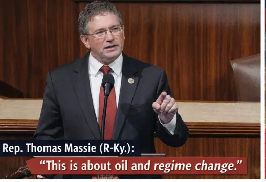 By describing the situation as “about oil and regime change,” Massie highlighted several core arguments: