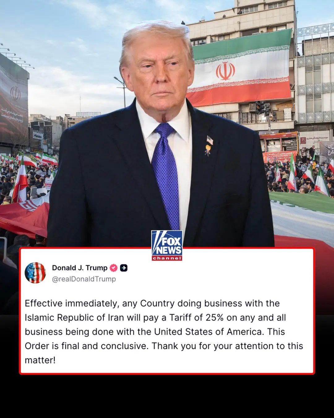 EHRAN TARIFFS: President Trump announced any country that continues doing business with the Islamic Republic of Iran would be hit with a 25% tariff on all trade with the U.S.